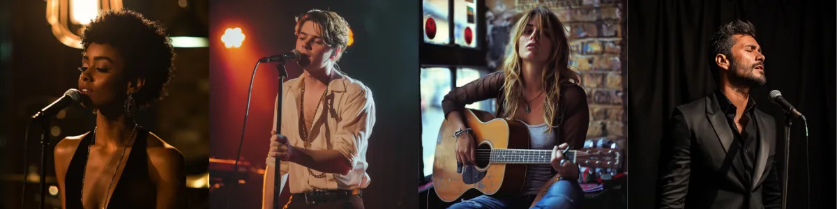 Live vocal performances (acoustic, full-band, a cappella, etc.).